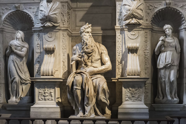 The artist and biographer Giorgio Vasari used the expression “terribilità” to describe the sense of greatness and the impressive expertise achieved by Michelangelo in his creations. In such a perspective, the statue of Moses can be considered as an absolute example of the challenge between art and nature, where the imitation of reality seems to reach the sense of divine.